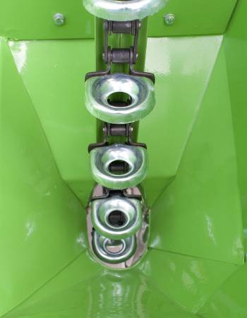 Gemini One Row Potato Planter from Bomet comes with “buckets” on a chain drive for planting potatoes.
